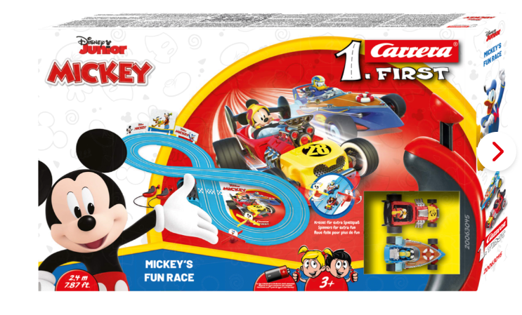 • Mickey – Fun Race • Carrera Kezdő készlet • Végtelen szórakozás Mikivel és Donalddal • 3 éves kortól