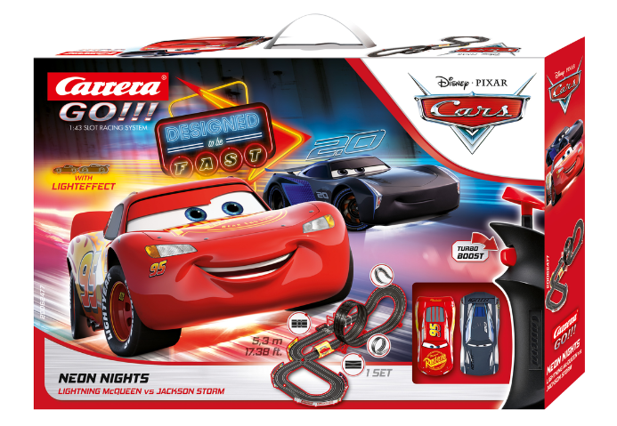 • Látványos Carrera GO!!! „Disney* Pixar Cars Neon Nights” versenypálya két Slot Car • Carrera GO!!!