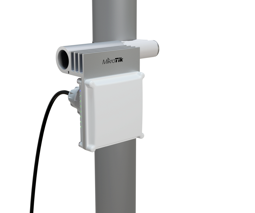 CubeSA 60Pro ac (60 GHz-es antenna, 802.11ay vezeték nélküli és 5 GHz-es 802.11ac biztonsági mentés, 4 magos x 716 MHz-es CPU, 256 MB RAM, 1 x Gigabit LAN port, RouterOS L4, POE, PSU) in point-APulti Point-ként használható beállítási pontként 800 méteres csatlakozásokhoz