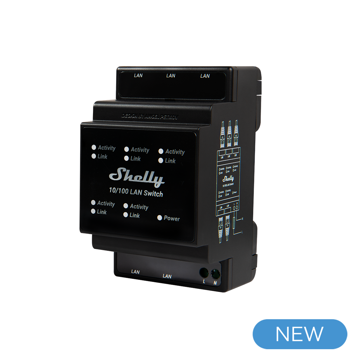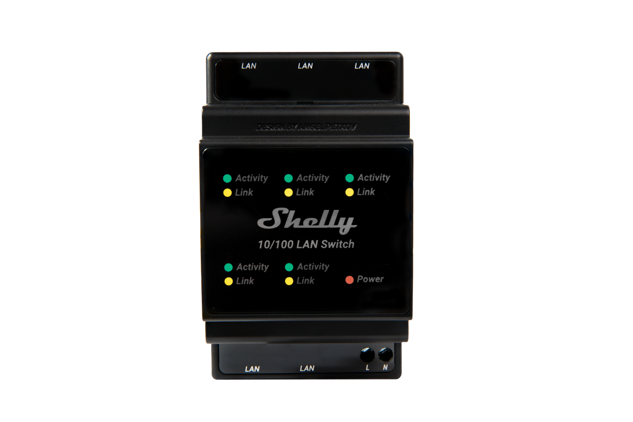 Shelly · DIN sínre szerelhető · „LAN kapcsoló” · 5 port · 10/100 Mbit