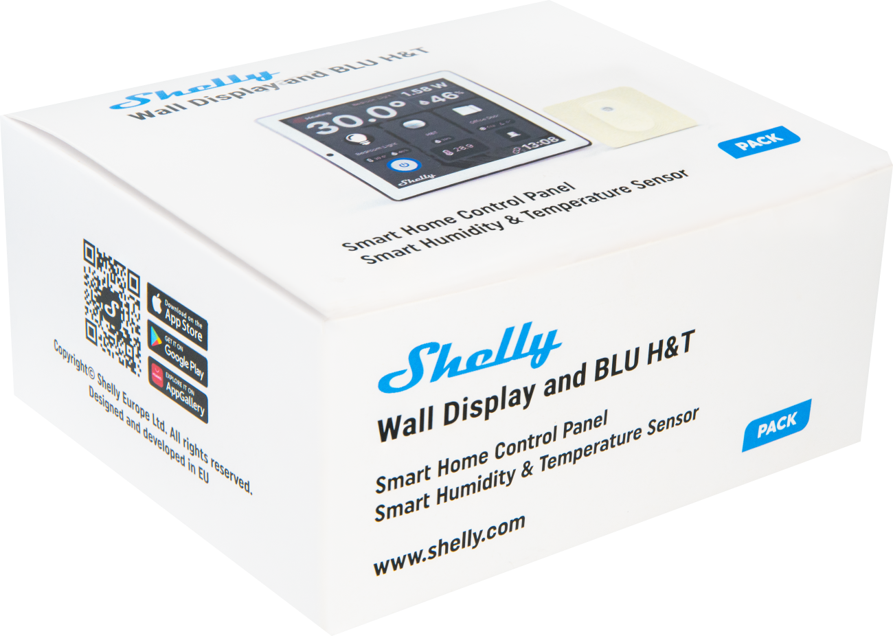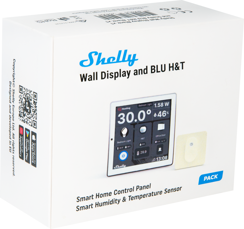 Irányítsd okoseszközeidet központi helyről a Shelly fali kijelzővel, amelyet most a Shelly BLU H&T-vel kombinálva biztosíthatsz a precíz klímaszabályozást.
