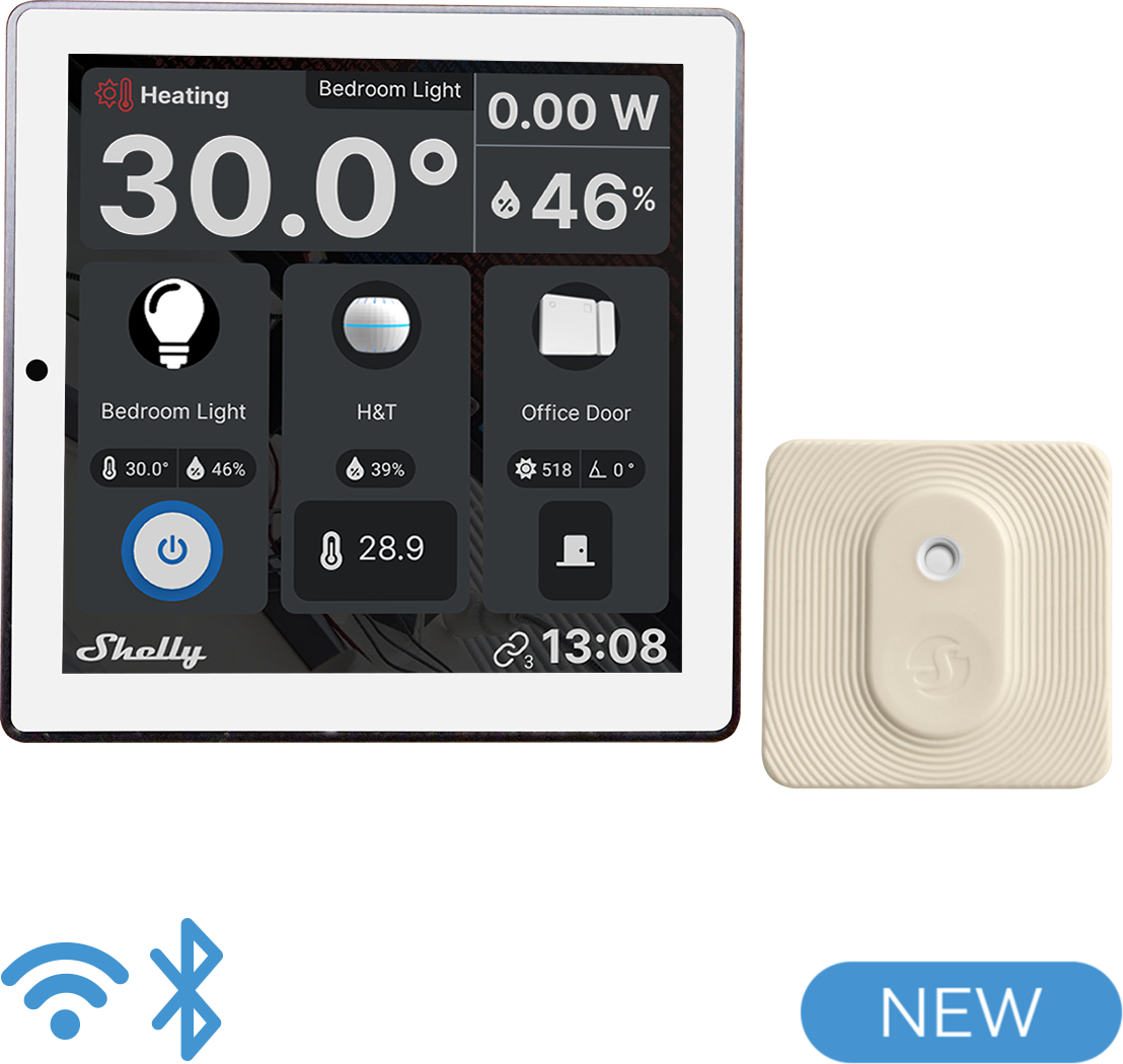 – Szobatermosztátként is működhet a Shelly BLU H&T-vel együtt – Bluetooth hőmérséklet- és páratartalom-érzékelő az azonnali környezeti adatokhoz