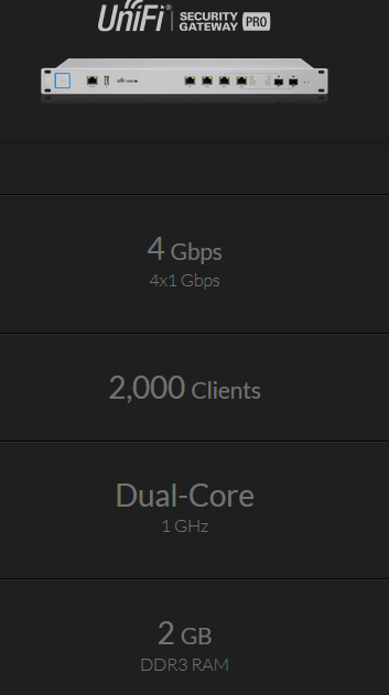 Ubiquiti Security Gateway Pro Enterprise Gateway Router Gigabit Ethernettel. Az UniFi® Security Gateway Pro költséghatékony, megbízható útválasztással és fejlett biztonsággal bővíti az UniFi Enterprise rendszert a hálózat számára. Modell: USG-PRO-4. Száloptikai csatlakozás: Az UniFi Security Gateway Pro két opcionális SFP portot kínál a száloptikai csatlakozáshoz a backhaul alkalmazások támogatásához. Rackbe szerelhető kialakítás: Az UniFi Security Gateway Pro egy strapabíró, rackbe szerelhető házban található. Nagy teljesítményű tűzfalteljesítmény: Az UniFi® Security Gateway fejlett tűzfalszabályzatokat kínál a hálózat és adatainak védelme érdekében. Kényelmes VLAN-támogatás: Az UniFi® Security Gateway Pro virtuális hálózati szegmenseket hozhat létre a biztonság és a hálózati forgalom kezelése érdekében. A csomag tartalma: UniFi Security Gateway Pro, tápkábel, rögzítőcsavarok (4 db), rögzítőanyák (4 db). Specifikációk: